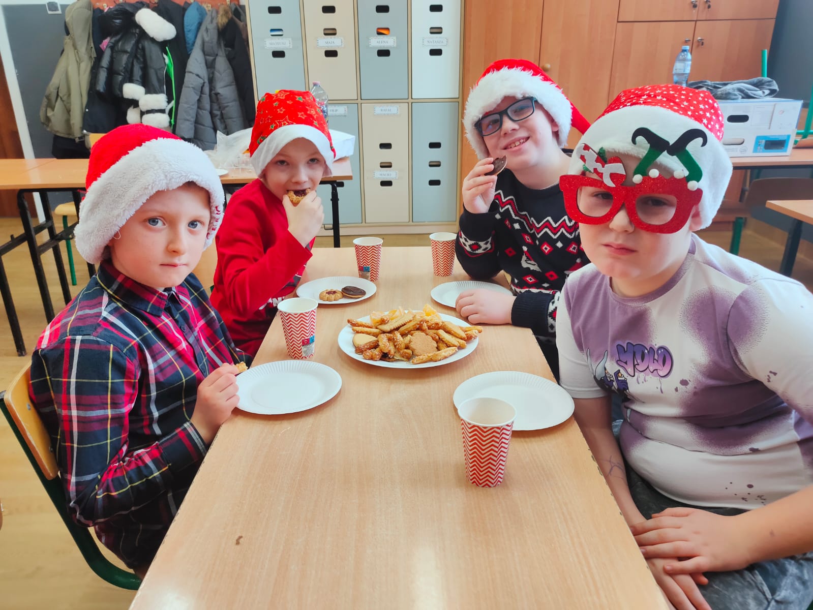 W naszej szkole Mikołajki były wyjątkowo radosnym dniem. Od rana uczniowie pojawiali się w czerwonych czapkach i świątecznych ozdobach. Najwięcej emocji wzbudziła wizyta Świętego Mikołaja. W wielu salach odbywały się również zabawy, konkursy i wspólne dekorowanie. Ten dzień pełen uśmiechu i życzliwości wprowadził wszystkich w świąteczny nastrój.