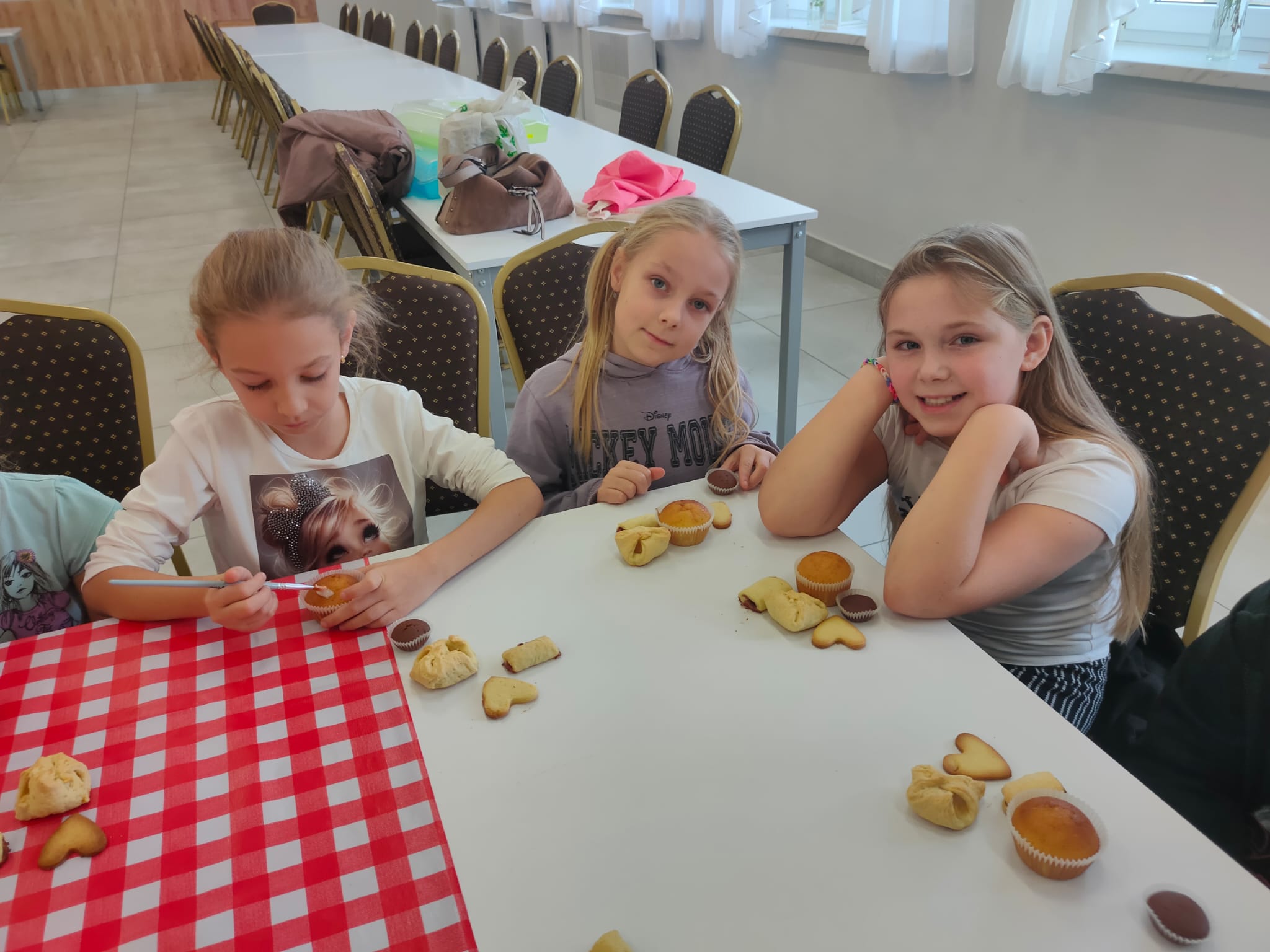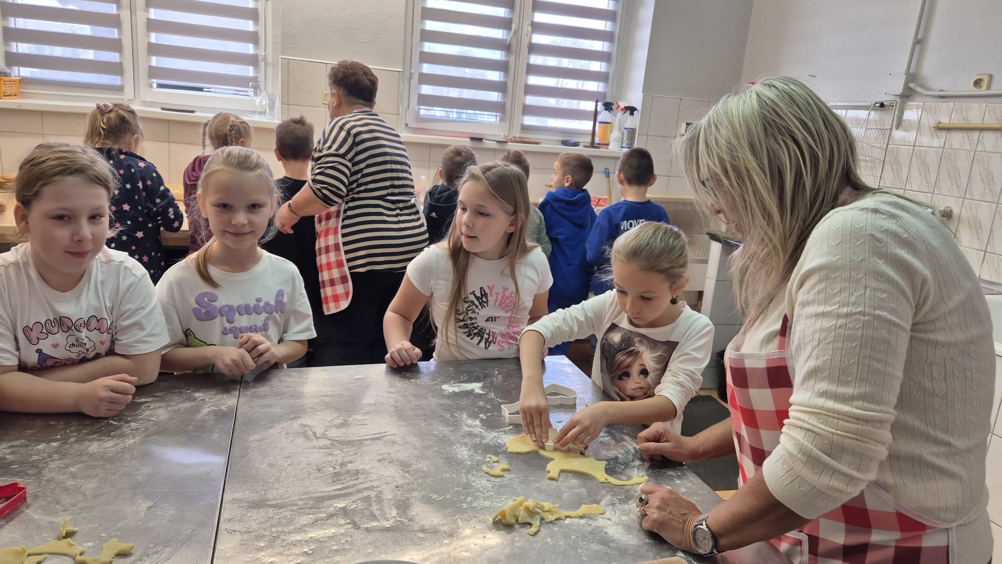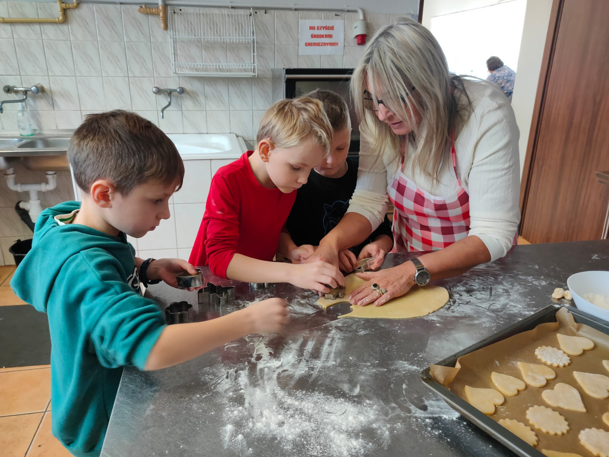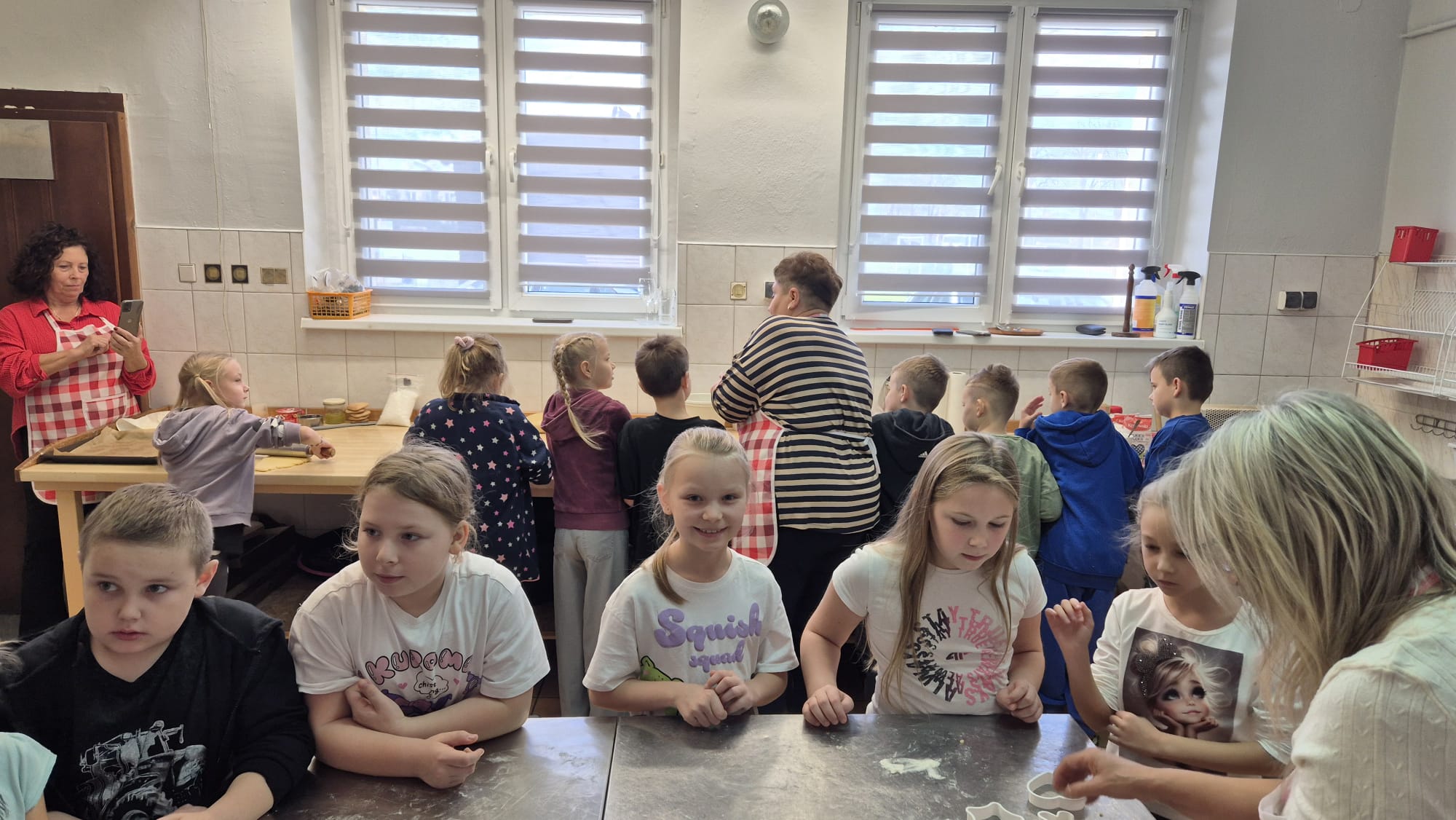 Po zakończeniu pracy na wszystkich czekała miła niespodzianka – panie z Koła Gospodyń Wiejskich poczęstowały dzieci smacznym deserem, babeczkami i sokiem. Spotkanie przebiegło w miłej i radosnej atmosferze, a uczniowie z dumą zabrali do domu własnoręcznie upieczone ciasteczka.