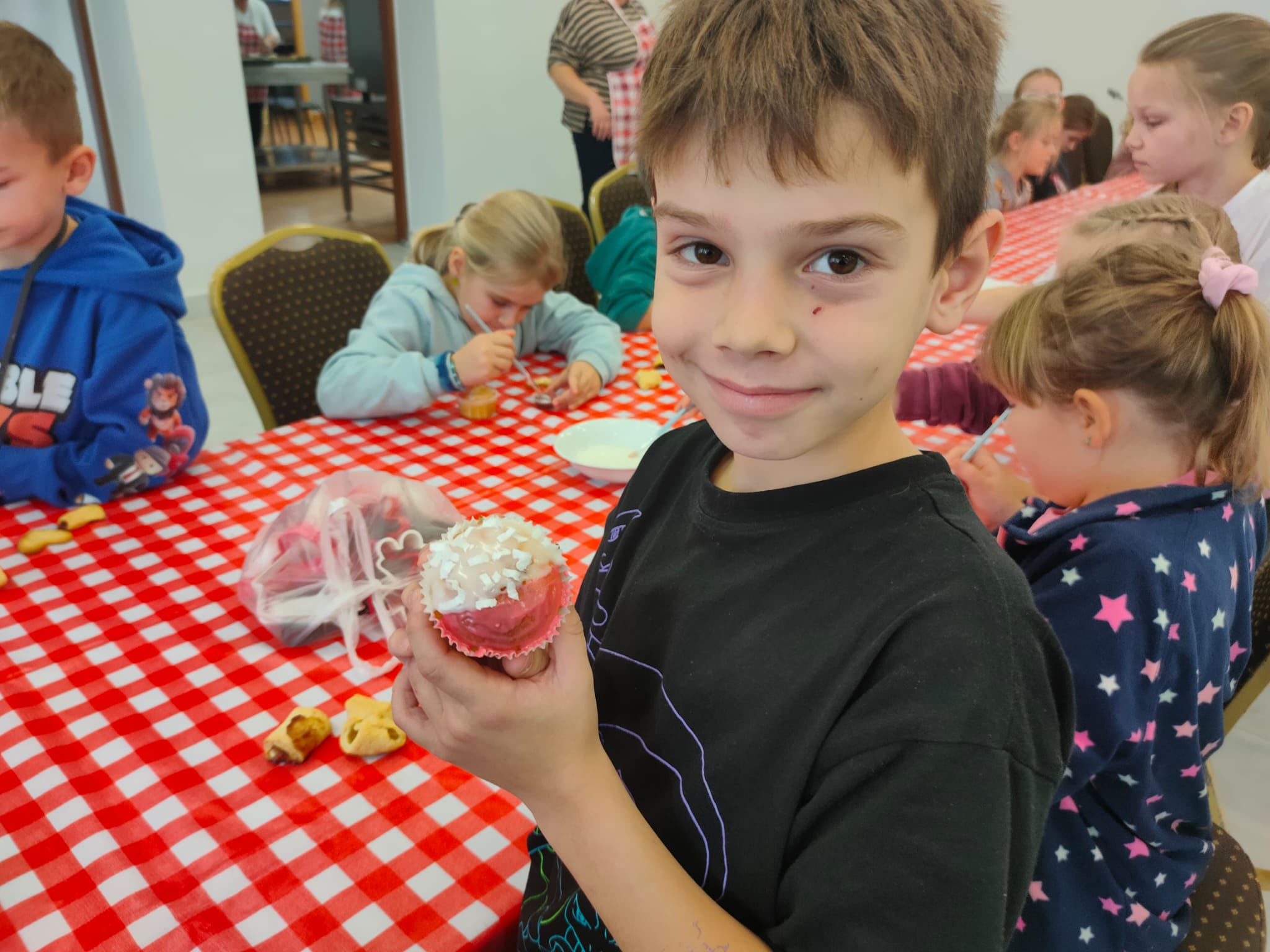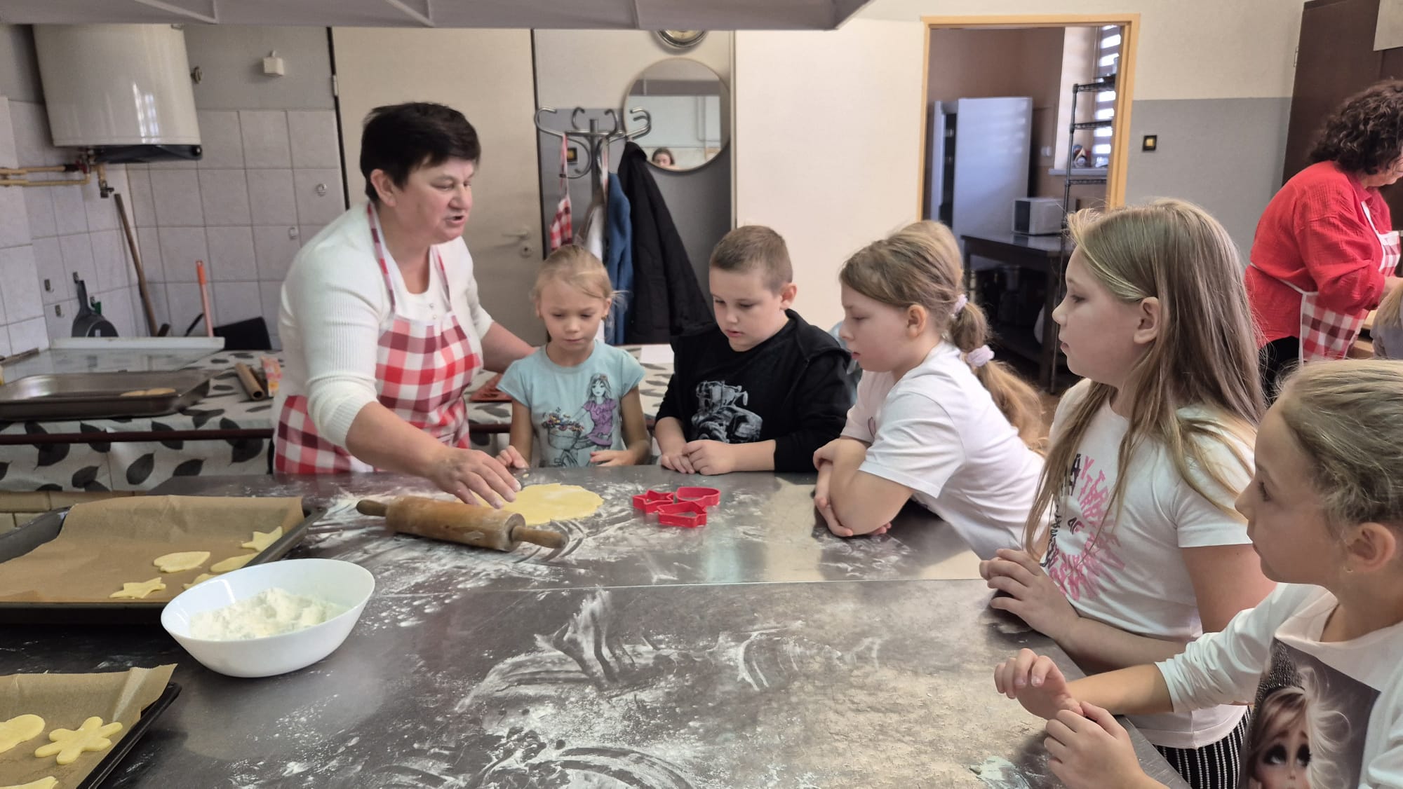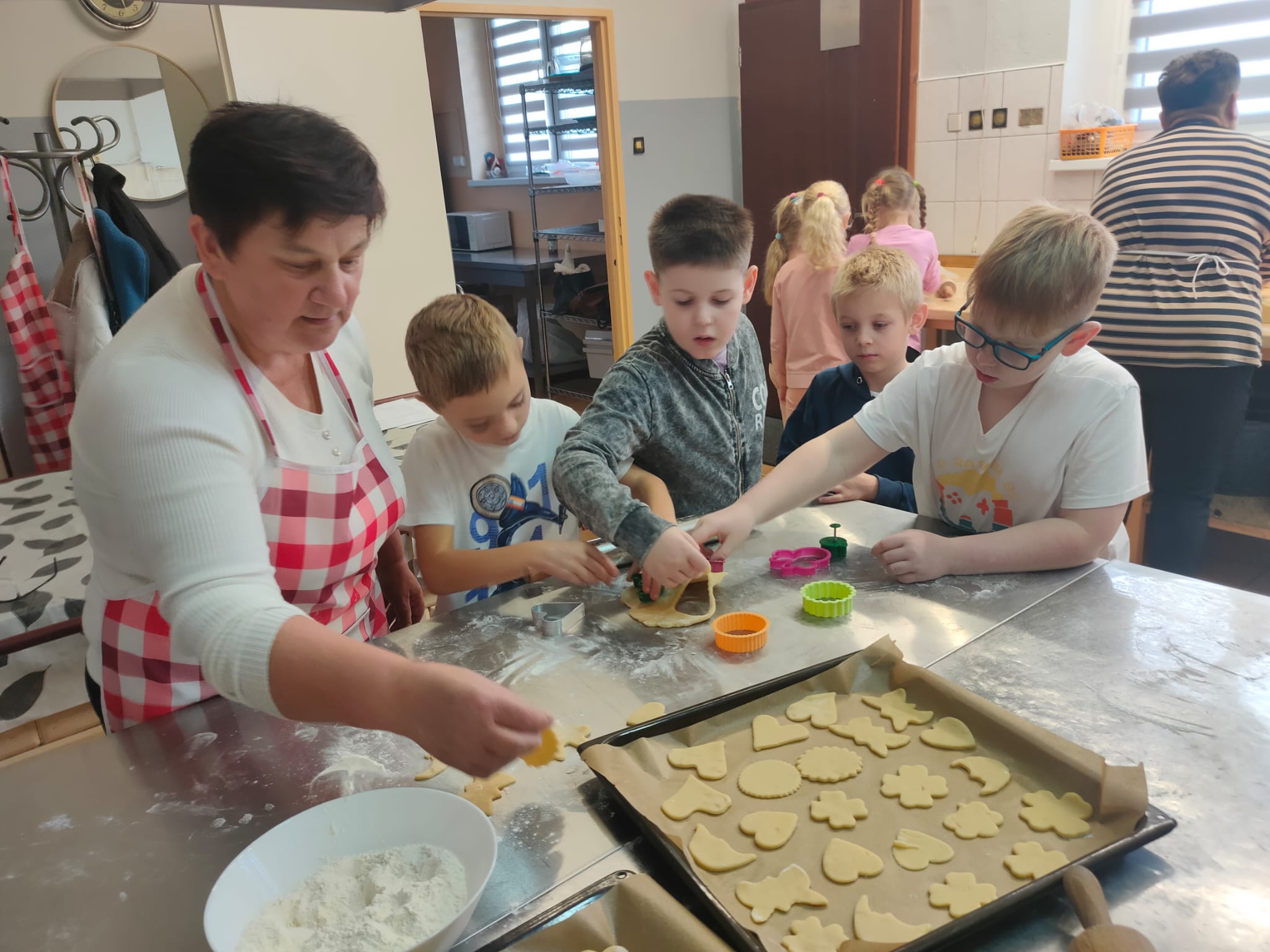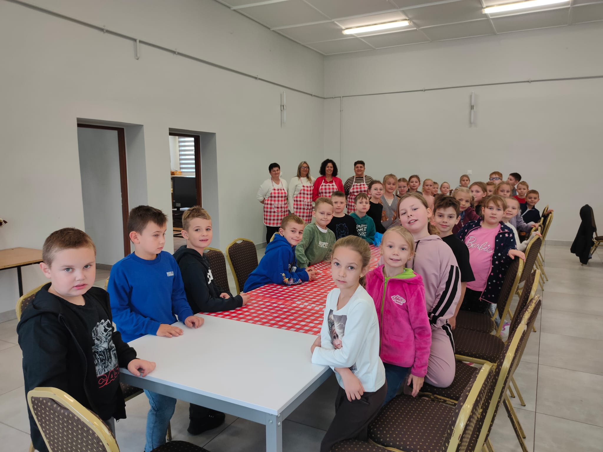Dnia 5 listopada 2025r.uczniowie klas IIa i IIb uczestniczyli w wyjątkowych zajęciach kulinarnych zorganizowanych wspólnie z Kołem Gospodyń Wiejskich. Pod czujnym okiem pań z koła dzieci samodzielnie przygotowywały i piekły pyszne ciasteczka. Uczniowie z zaangażowaniem wyrabiali ciasto, wykrawali różne kształty i ozdabiali swoje wypieki biało- czerwonym lukrem, symbolizującym flagę polski.