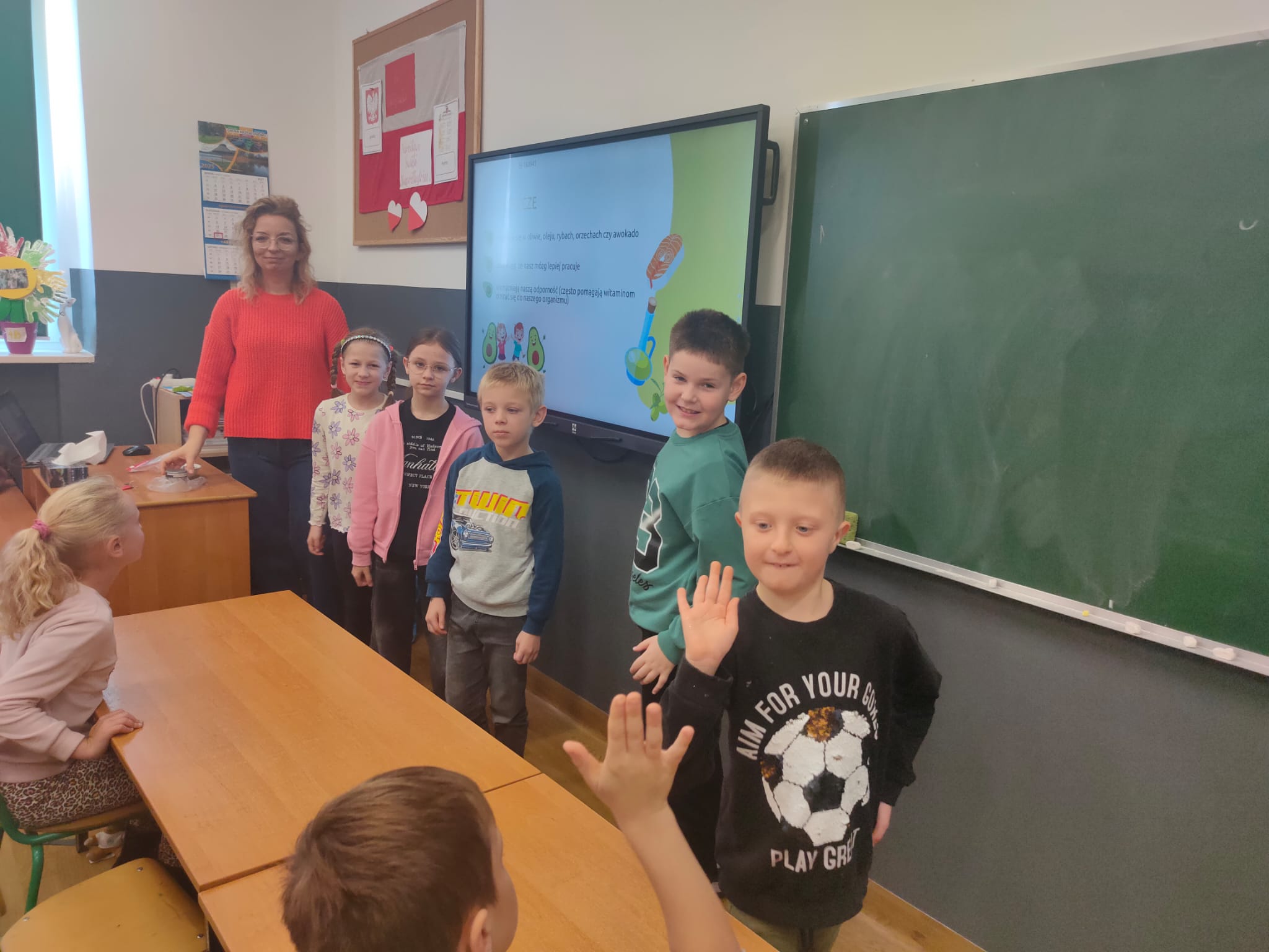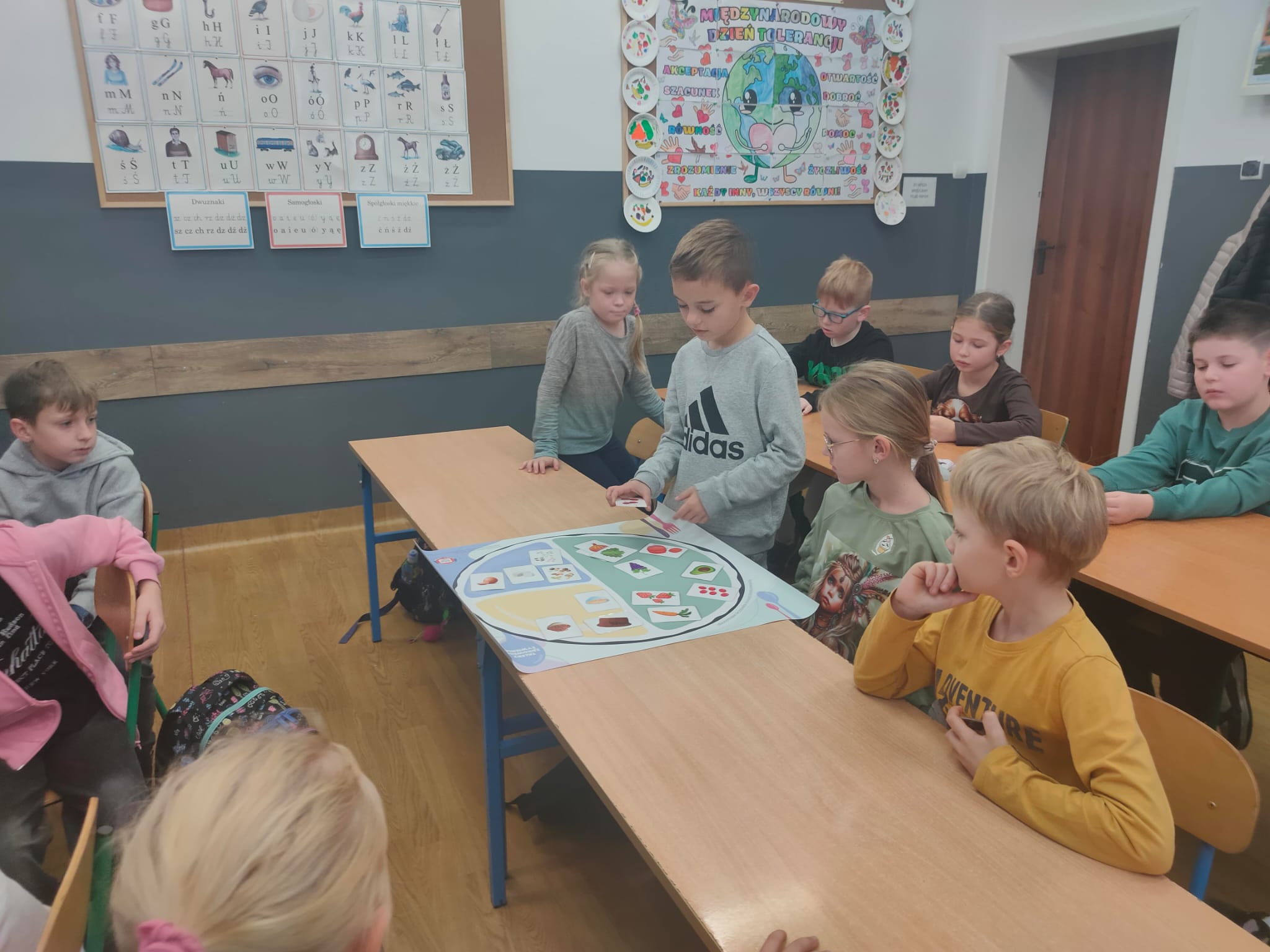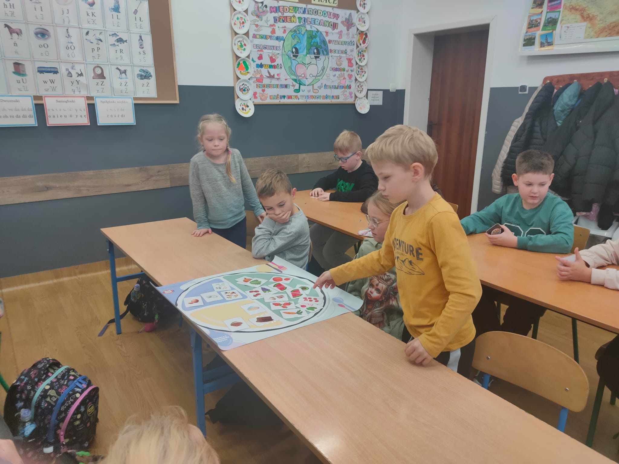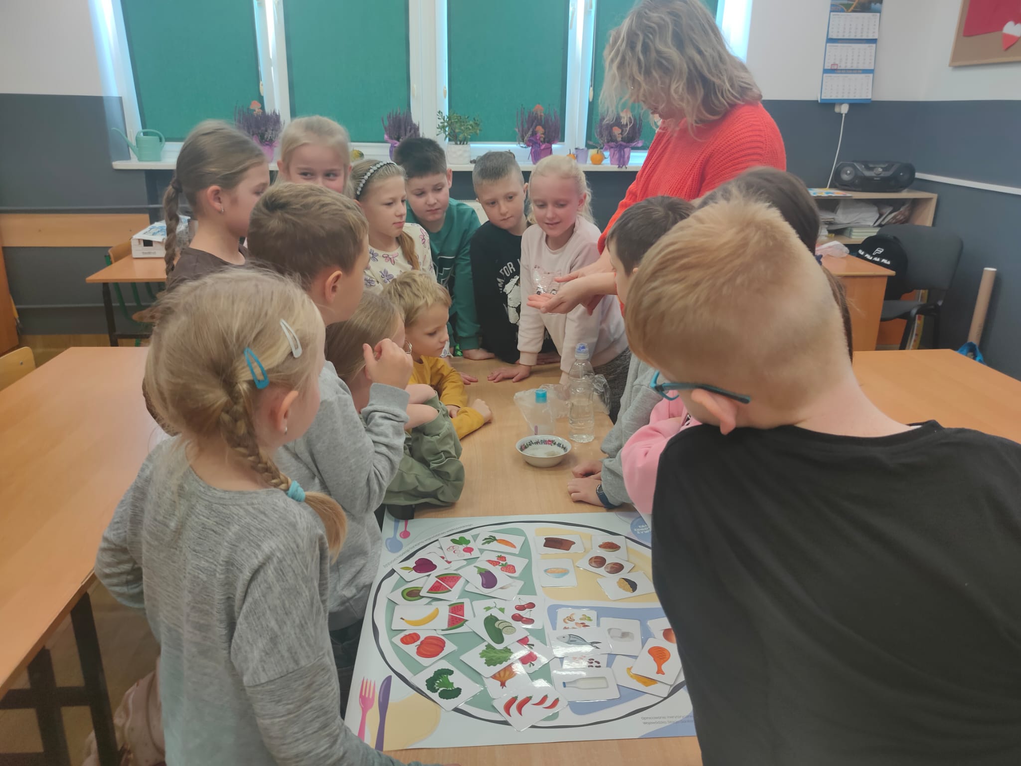 4.11 uczniowie klas 2a ì 2b wzięli udział w warsztatach organizowanych przez Państwową Stację Sanitarno Epidemiologiczną w Lesznie na temat ” TALERZ ZDROWEGO ŻYWIENIA ” . Dzieci dowiedziały się jak prawidłowo komponować posiłki, w jakich proporcjach powinniśmy zjadać pokarmy z różnych grup spożywczych. Przeprowadziliśmy ciekawe doświadczenie i zapoznaliśmy się z instruktażową piosenką odnośnie odpowiedniego sposobu mycia rąk.