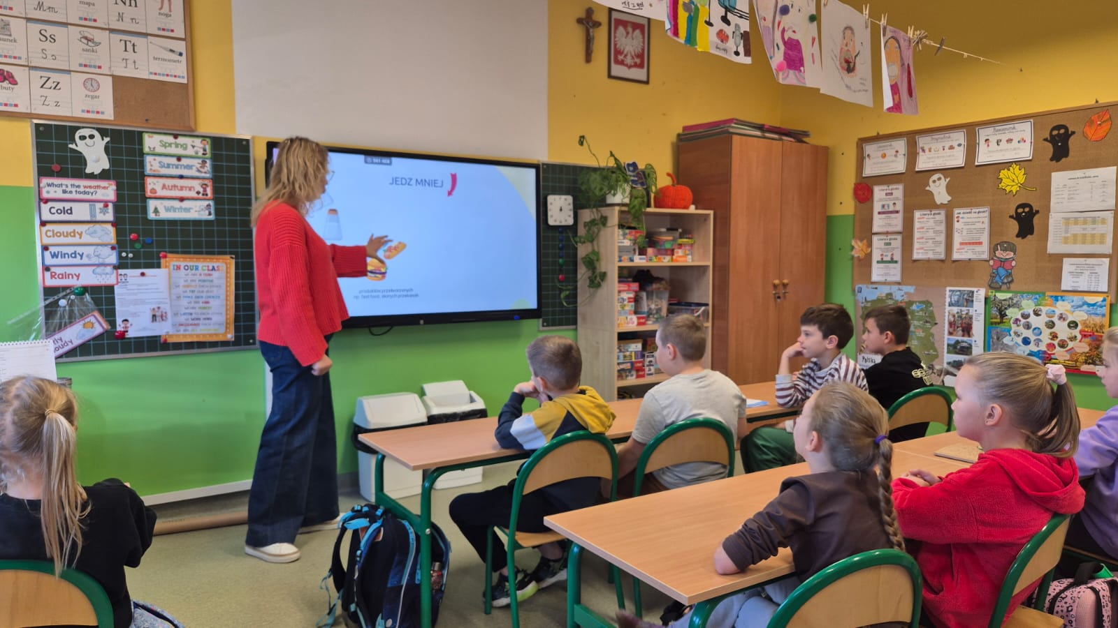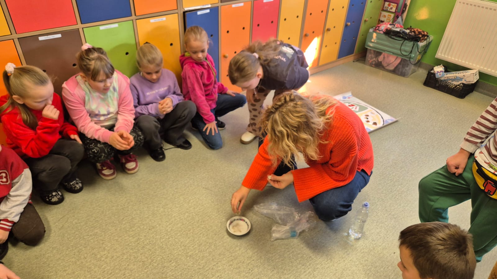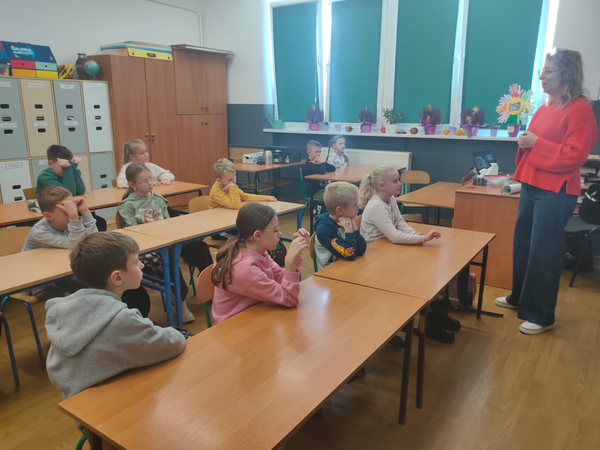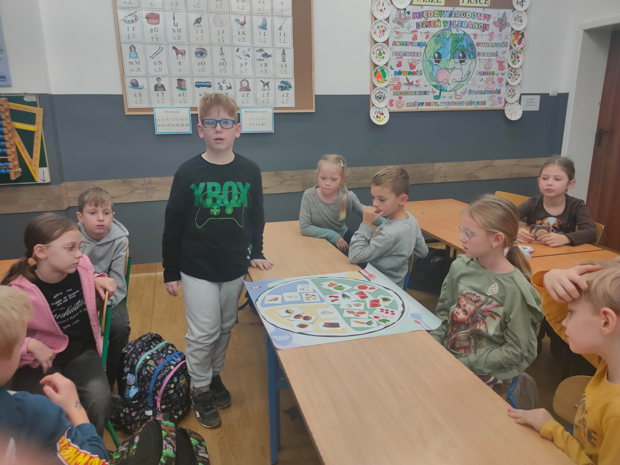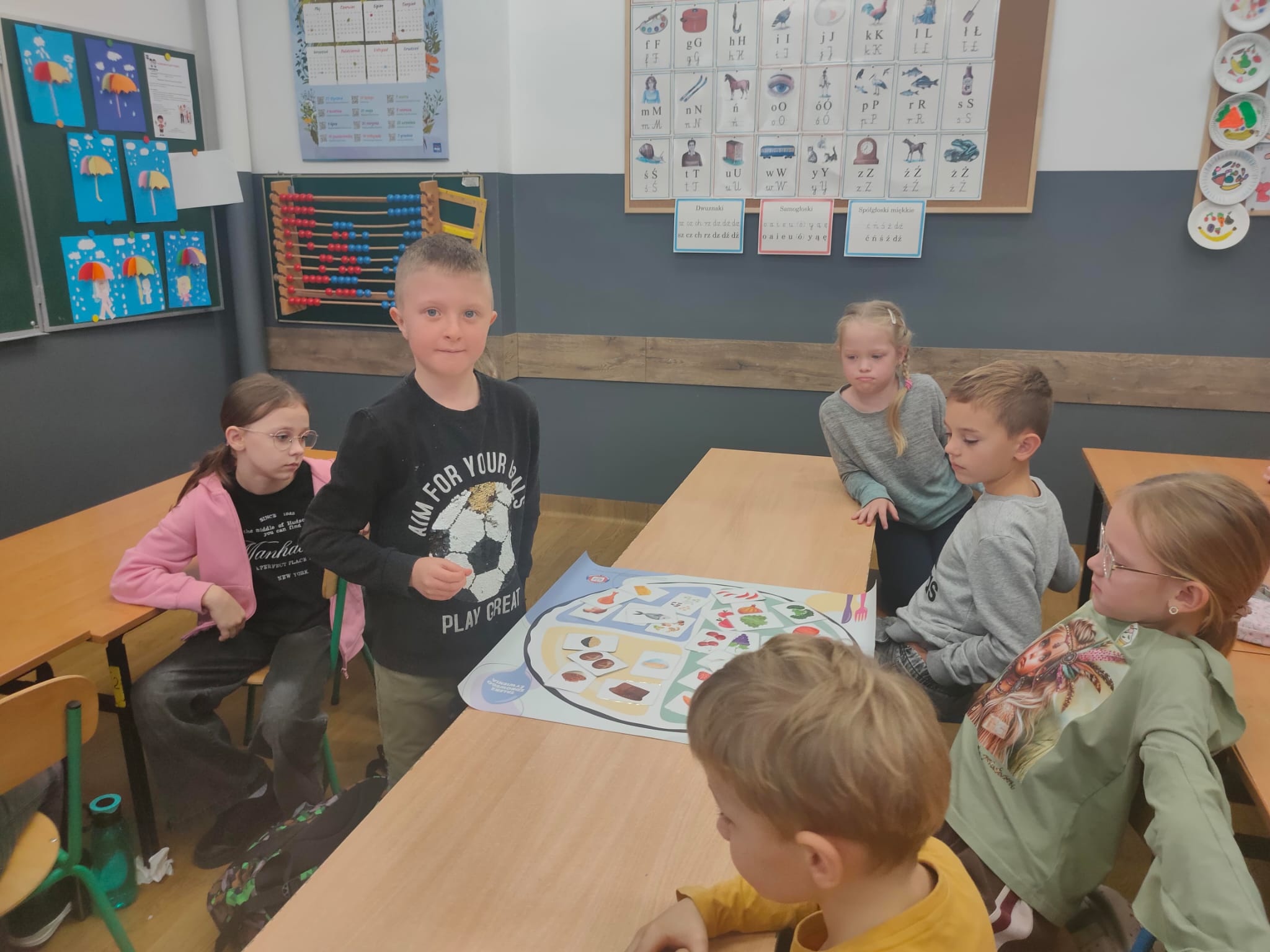 4.11 uczniowie klas 2a ì 2b wzięli udział w warsztatach organizowanych przez Państwową Stację Sanitarno Epidemiologiczną w Lesznie na temat ” TALERZ ZDROWEGO ŻYWIENIA ” . Dzieci dowiedziały się jak prawidłowo komponować posiłki, w jakich proporcjach powinniśmy zjadać pokarmy z różnych grup spożywczych. Przeprowadziliśmy ciekawe doświadczenie i zapoznaliśmy się z instruktażową piosenką odnośnie odpowiedniego sposobu mycia rąk.