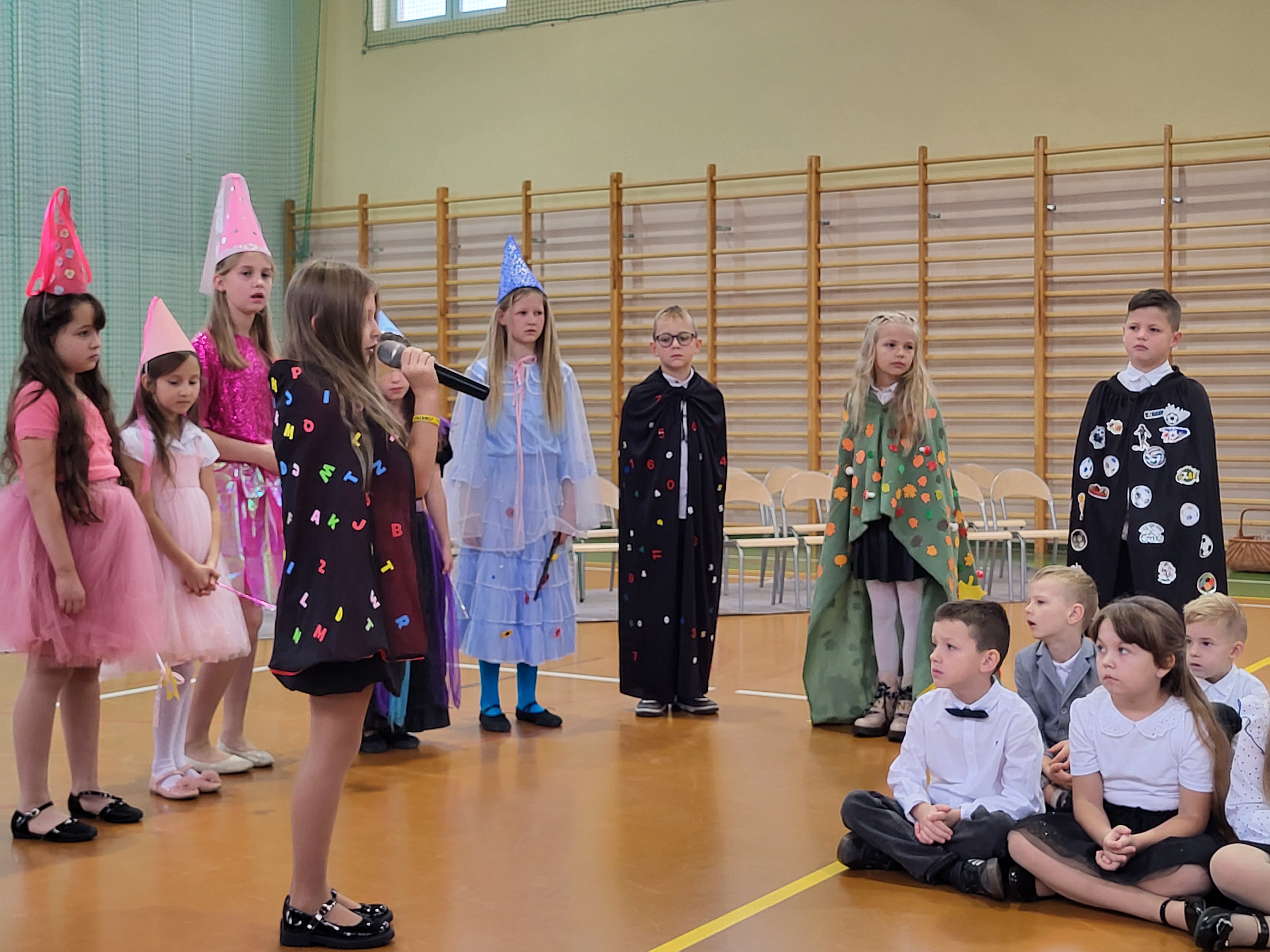 Podczas tegorocznych obchodów odbyło się również uroczyste pasowanie uczniów klas pierwszych. Najmłodsi uczniowie, w odświętnych strojach, zaprezentowali piękny program artystyczny, w którym udowodnili, że są już gotowi, by stać się pełnoprawnymi członkami szkolnej społeczności. Następnie Pani Dyrektor dokonała symbolicznego aktu pasowania na ucznia, a każdy pierwszoklasista otrzymał pamiątkowy dyplom.